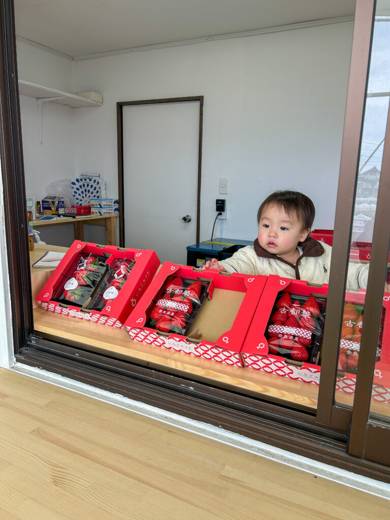1歳半健診のため保育園をお休みした我が子が直売所へ遊びに来てくれました。