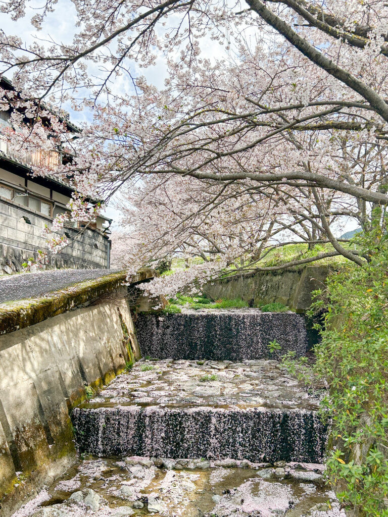 満開の桜の下をゆっくり歩きながら